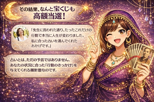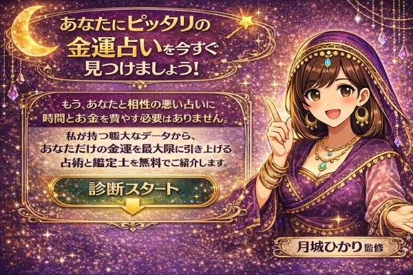 私は、数多の占い師と占術の成功・失敗データを基に、あなたにとって最も効果が高く、結果が出やすい「最高のパートナー(占い師)」を客観的に選定します。